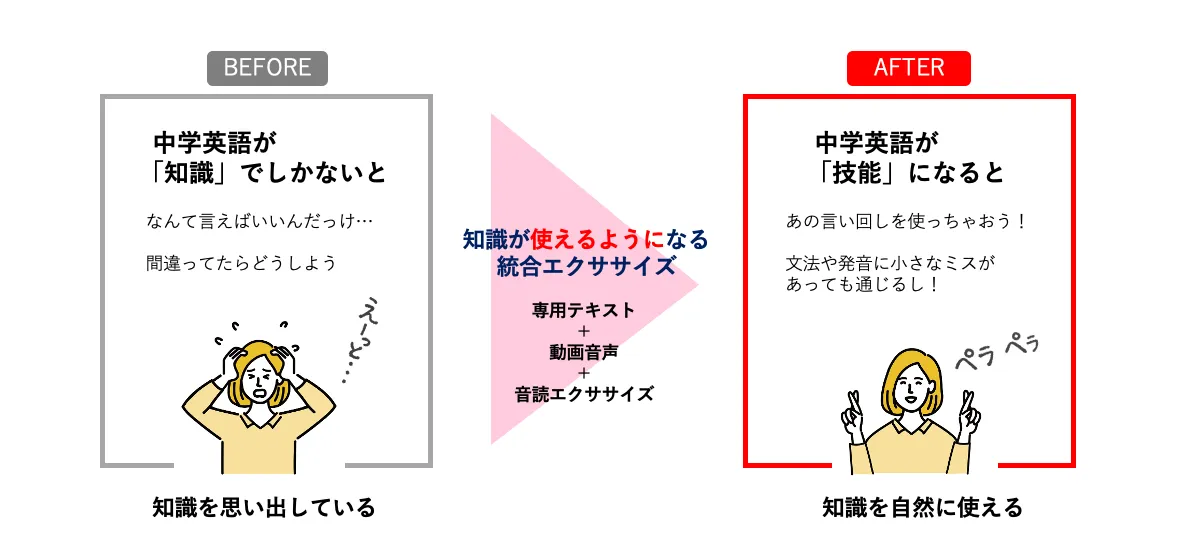 ãªãã§ãããïŒ ããã¯ãåŠæ ¡ã§ç¿ã£ãè±èªãå®éã®äŒè©±ã§ãèãããã話ãããåã身ã«ã€ããŠããªãããã ã€ãŸãè±èªåãã¢ã¿ãã®ãªãã®ãç¥èãã§ãããªãã®ã§ãã